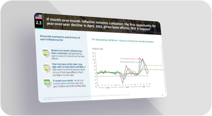 If month-over-month inflation remains contained, the first opportunity for 2.3 year-over-year decline is April 2022, given base effects. Will it happen? Know the mechanics and drivers of Y/Y elevated but M/M not—focus on month-over-month evolution each inflation print 0 2. n o i s r e 1 V 2 202 Inflation (%) r e b o t Month-over-month inflation has c 25 O 14 been contained, highlighting that ed t a d 12 p year-on-year prints are driven by base u es v i 1 1M annualized change t effects 10 ec p s er 3M annualized change P e v 8 i t Year-over-year prints must stay u ec 6M annualized change x 6 E high until at least April and May of G C B . ed 2022, which is the first opportunity to 4 12M annualized change v er es roll out of high base effects of April r s 2 t h g i r and May of current year l l A 0 . p u o r G g -2 n I f mont h-over-month remains at i t l u s n current levels until then, year over -4 o C n o 1 3 5 7 9 t year inflation would fall by May 2022 1 3 5 7 9 11 1 3 5 7 9 11 s -6 o B 2020 y 2019 2021 b 1 2 0 2 © t h g i r y p o 1. Base effect refers to the impact of the corresponding “base” or period of the previous year on current growth estimates (e.g., during 2020 low core CPI); 2. Based on Core CPI C Source: BLS, BCG 1515