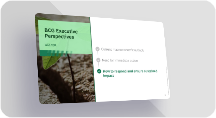 The CEO's Dilemma Page 14 Page 16BCG Executive Perspectives AGENDA Current macroeconomic outlook Need for immediate action d. veer How to respond and ensure sustained esr ights l r impact Al. oupr G ting sul on C ton osB by 2 202 © ight 14 opyrC