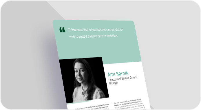 Telehealth and telemedicine cannot deliver well-rounded patient care in isolation. Ami Karnik Director and Venture General Manager • Virtual care is certainly here to stay, but its future • The year to come will see retailers deploying is rooted in how well it is paired with in-person health care strategies with even greater force. care. With the peak of COVID-19 mayhem behind us, Spurred by the need for convenient COVID-19 testing it is becoming clearer that telehealth and telemedicine sites, retailers have enthusiastically entered the health cannot deliver well-rounded patient care in isolation. The care space. Their near-term focus will be on expanding coming year will reveal which companies can deliver the primary care and on increasing omnichannel capabilities right combination of virtual and in-person care in a way to bring accessible, low-cost, and convenient care to pa- that optimizes patient convenience, reduces clinician tients. In addition, as competition in the space heats up, burnout, enhances clinician-patient engagement, and many retailers will opt to boost their personalized care improves health outcomes. offerings through data analytics and cloud computing ca- pabilities. Meanwhile, consumer stickiness will become • Home-based health care will receive a lot more the key to longer-term success. attention in the coming year. Driven by a growing geriatric population and improvements in technology, the balance between traditional in-person care and home-based care has been tilting toward the latter—a trend accelerated by the pandemic. With an expected annualized growth rate just shy of 8%, according to Grand View Research, home-based care is likely to continue picking up pace as more baby boomers need longer-term care for chronic conditions. In tandem, sup- port services for caregivers will increase as the demands on them become more acute. These services could cover everything from hands-on medical support to ancillary and logistics services that ease caregivers’ burden.